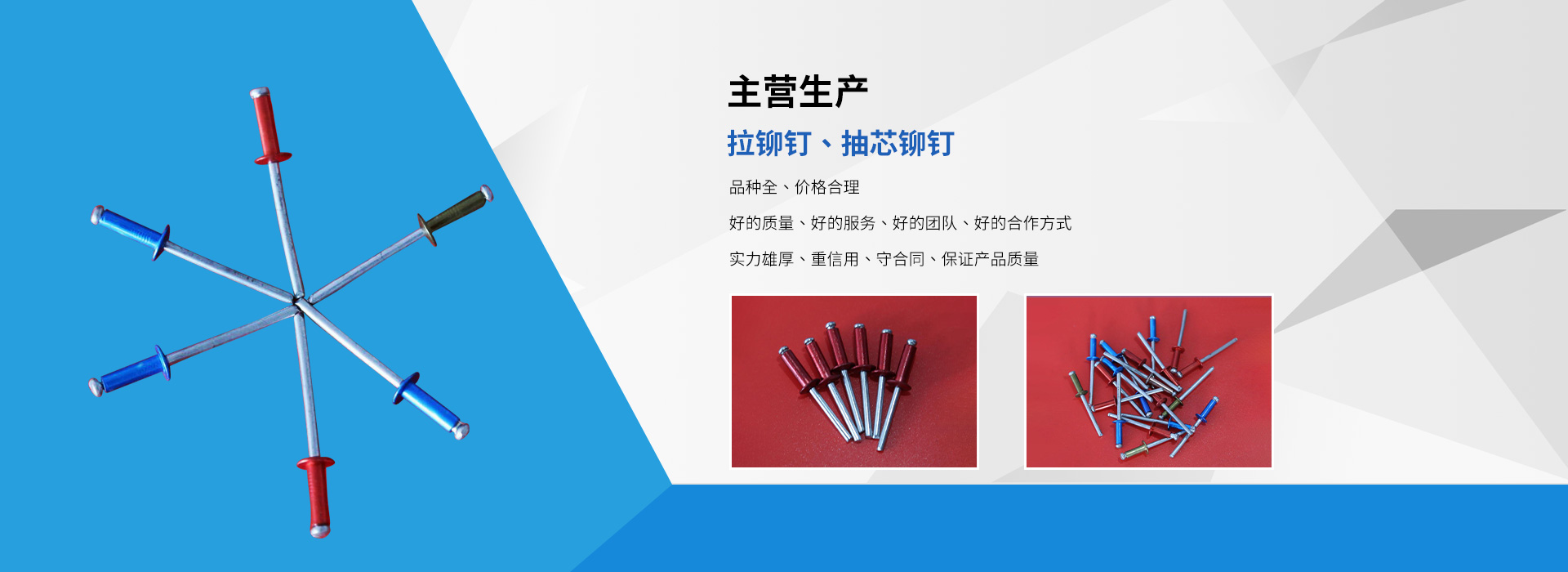 臨沂市龍牌異型鉚釘廠是拉鉚釘、抽芯鉚釘等產(chǎn)品生產(chǎn)加工的個(gè)體經(jīng)營,公司總部設(shè)在臨沂市羅莊區(qū),臨沂市龍牌異型鉚釘廠具有完整、科學(xué)的質(zhì)量管理體,公司自成立以來,一直秉承“質(zhì)量為準(zhǔn),客戶至上”的經(jīng)營理念,以產(chǎn)品“品種豐富、價(jià)格合理”,在消費(fèi)者當(dāng)中享有較高的身分,得到了廣大消費(fèi)者的信賴與好平,公司并與多家零售商和代理商建立了長期穩(wěn)定的合作關(guān)系,公司實(shí)力雄厚,重信用、守合同、產(chǎn)品質(zhì)量放心,以多品種經(jīng)營特色和薄利多銷的原則,歡迎廣大消費(fèi)者前來洽談業(yè)務(wù)!